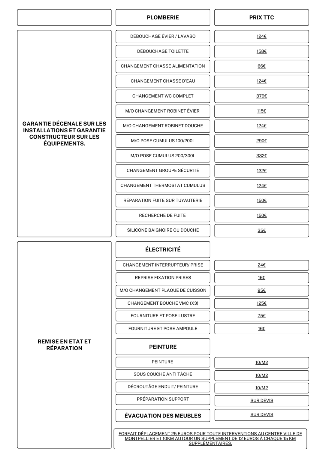 Grille tarifaire